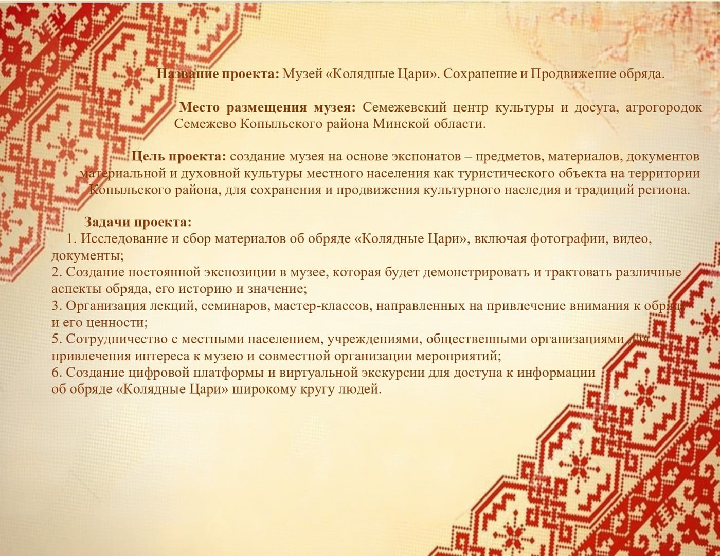 Организация-заявитель, предлагающая проект: государственное учреждение культуры «Копыльский районный центр культуры»